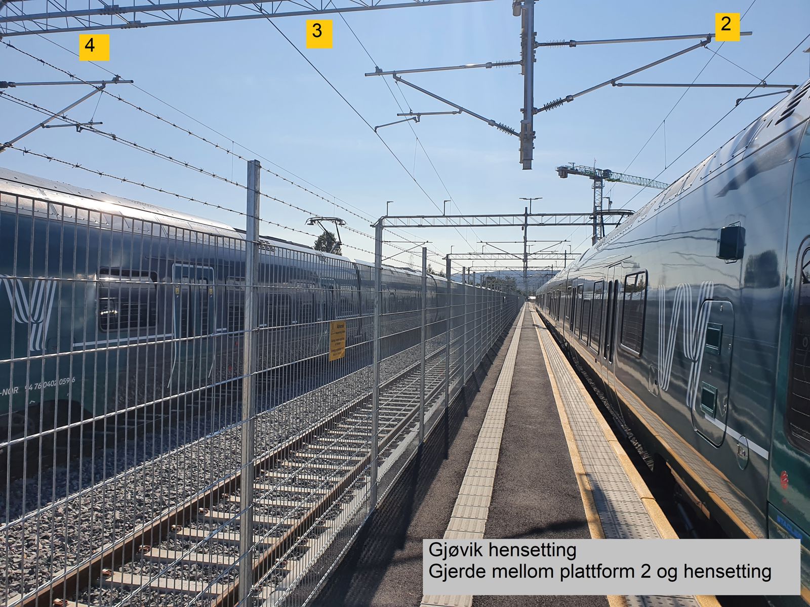 Gjerde mellom plattform 2 og hensetting.