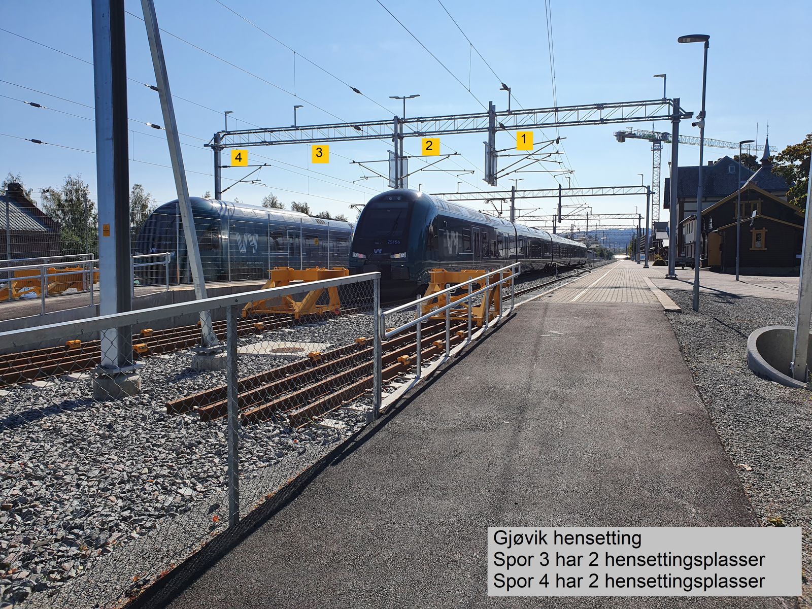 Hensettingsspor 3 og 4 har to hensettingsplasser hver.