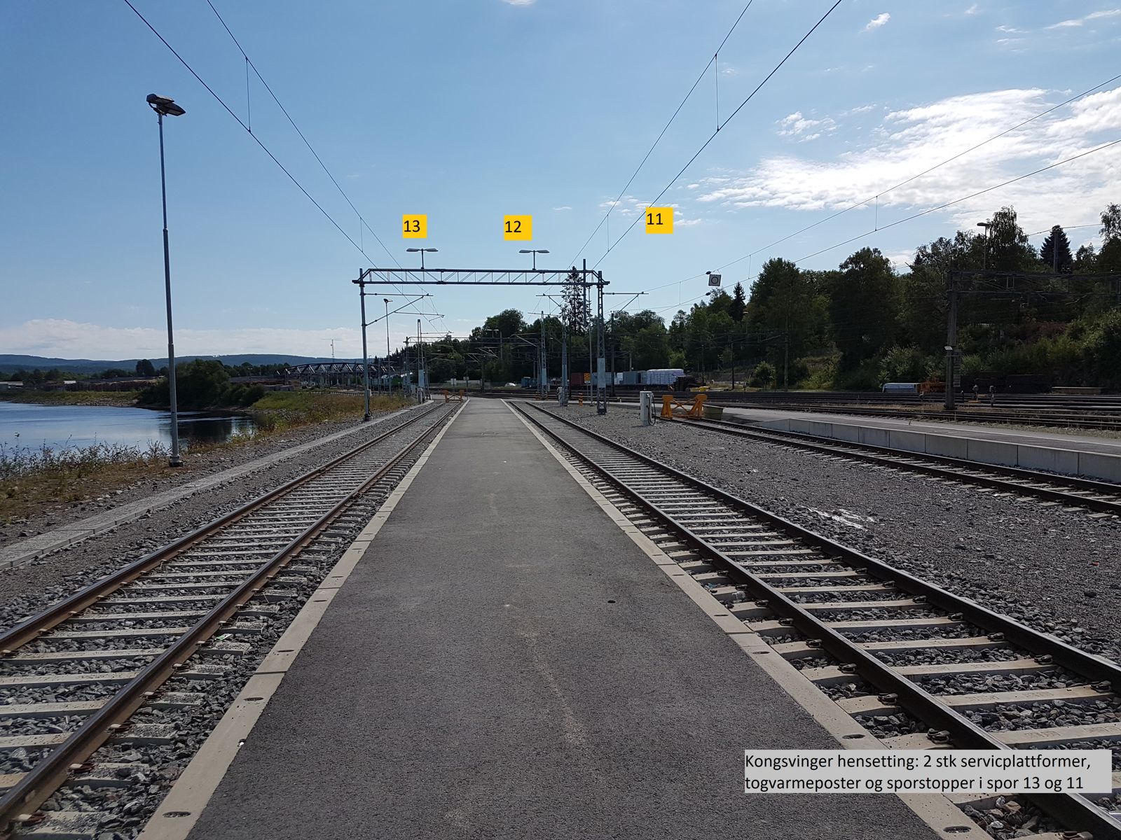 Spor 11 og spor 13 har begge serviceplattform og togvarmepost.