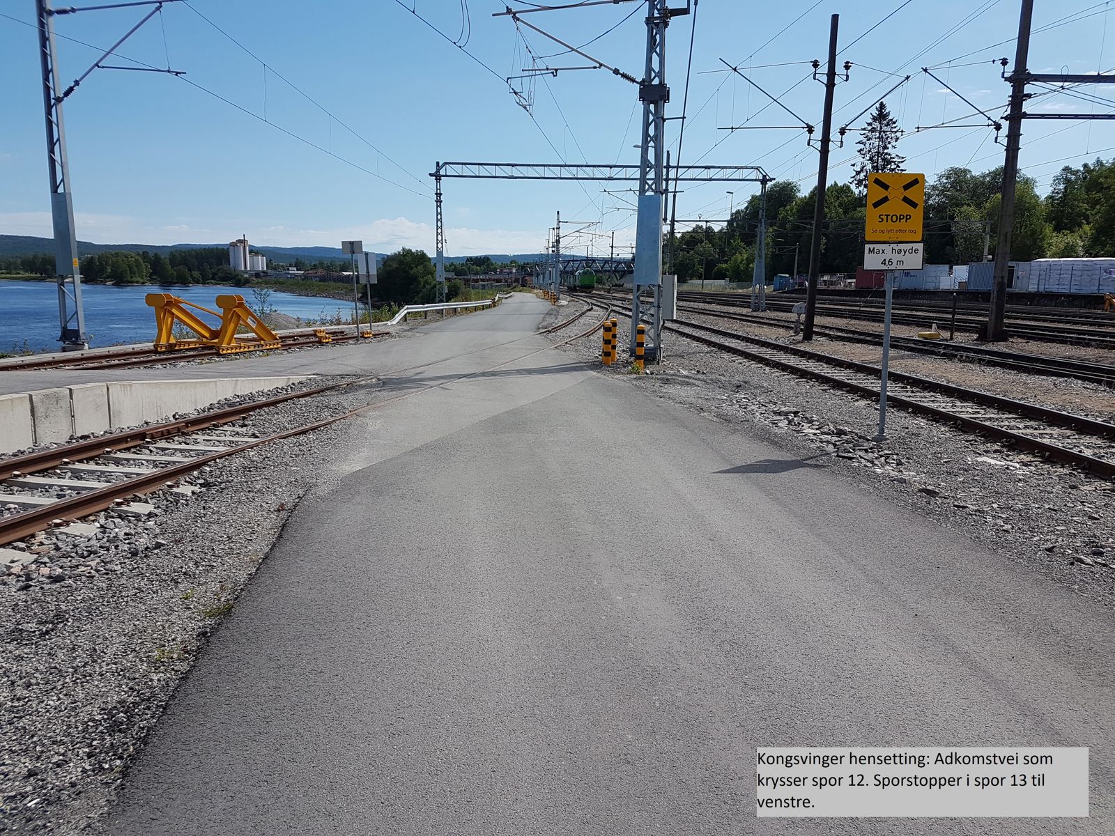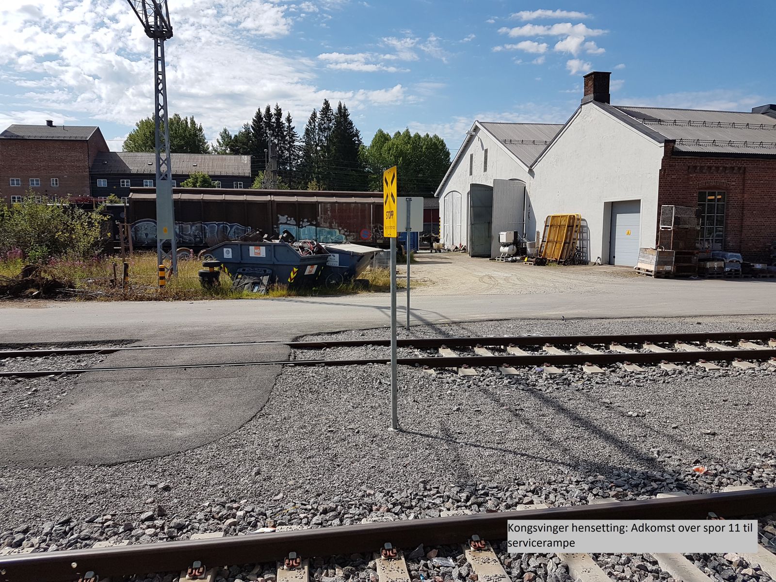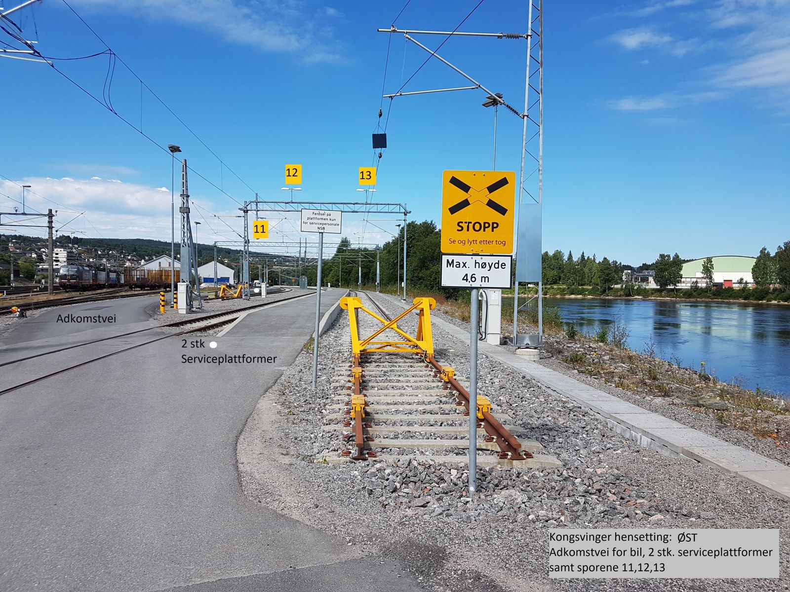 Adkomstvei for bil, to serviceplattformer, og spor 11-13.