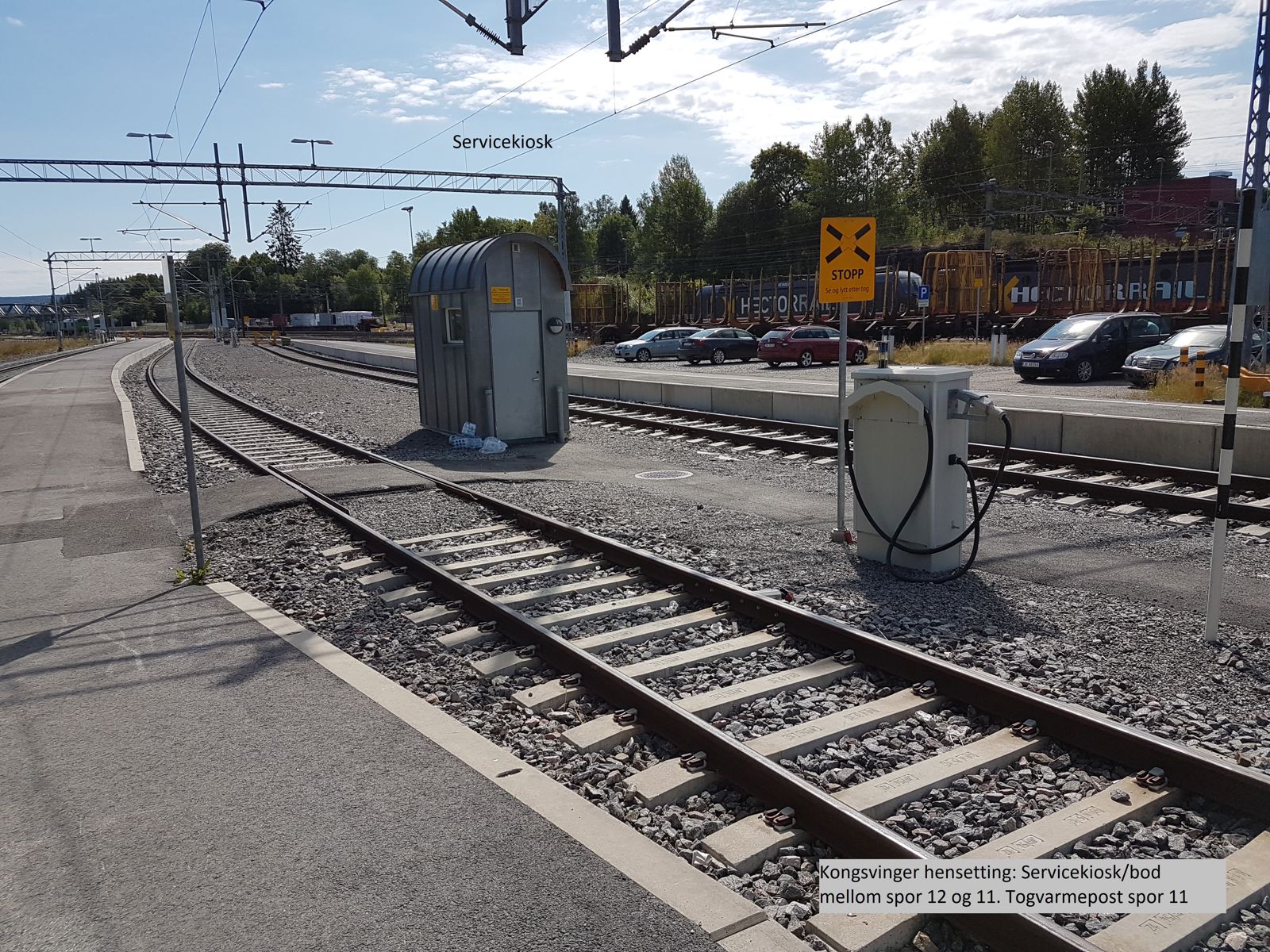 KL-anlegg | Serviceplattform | Sportilgang med bil | Toalettømming til stasjonært anlegg | Vannfylling | Togvarme | Tog-vaskemaskin | Dieselanlegg | Bremseluft | Merknader |