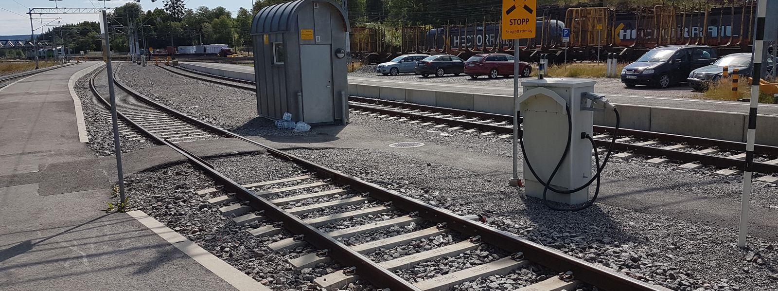 Innkjøring spor 11-13 på Kongsvinger hensettingsområde vest. Togvarmepost i spor 11.