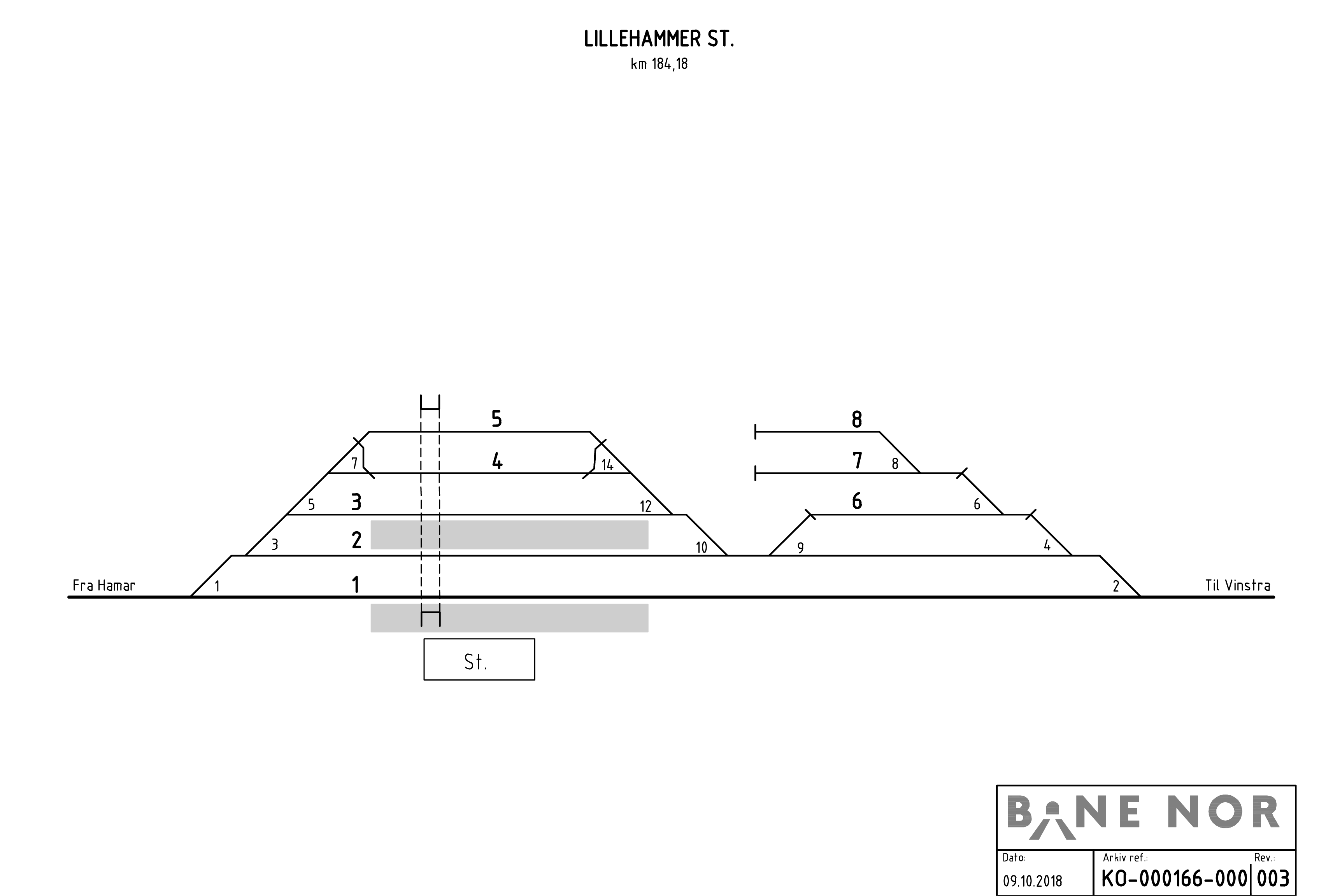 | 3 | Togspor | 411 | 283 | Spor 3 er avvikspor fra spor 2, og man må kjøre del av spor 2 nordover for å komme til hovedspor. | ||||