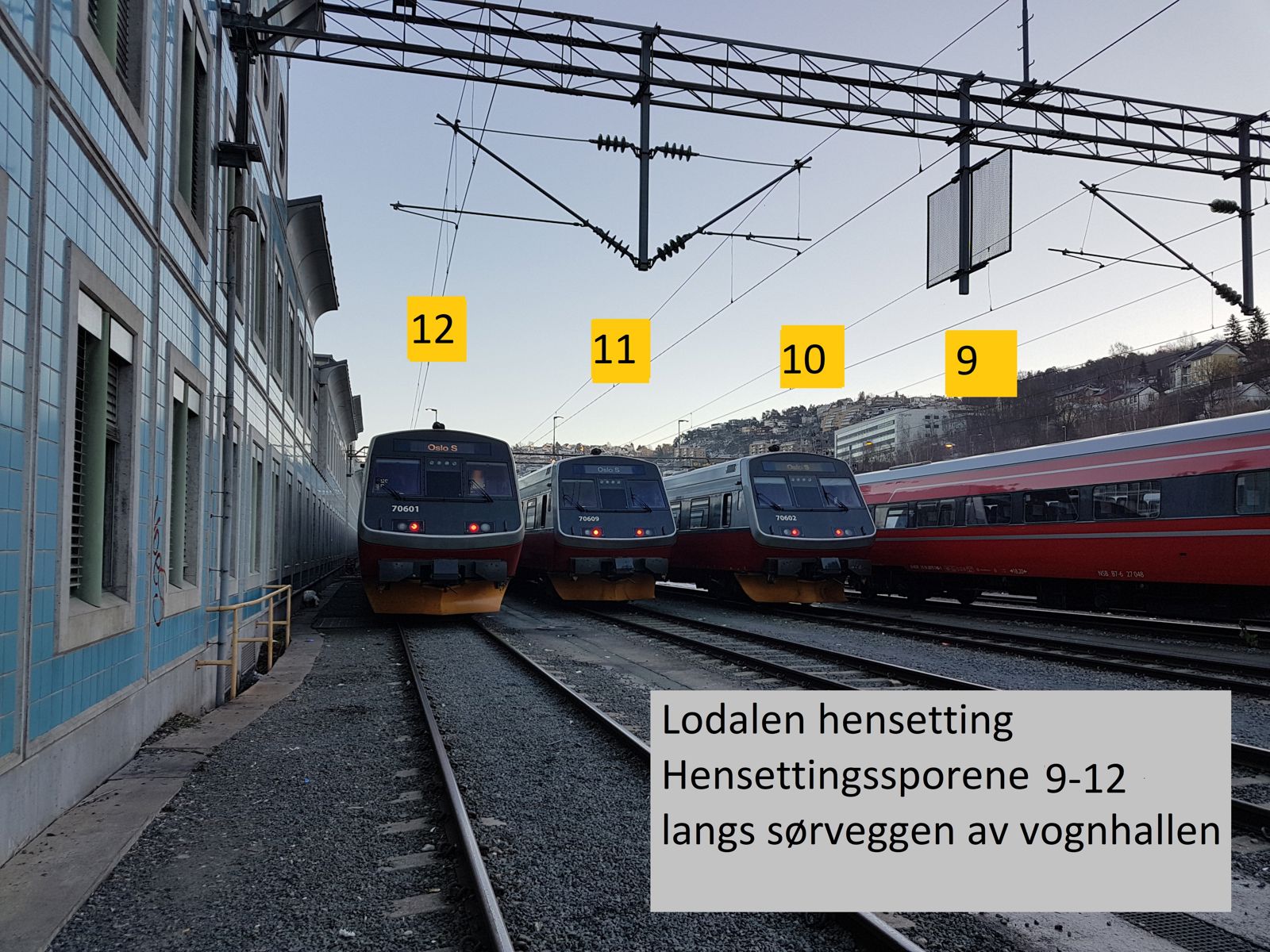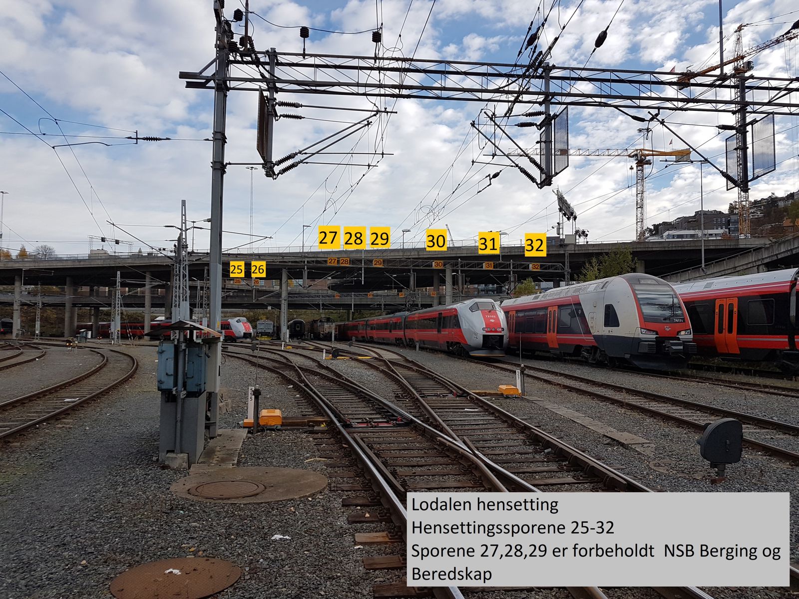 KL-anlegg | Serviceplattform | Sportilgang med bil | Toalettømming til stasjonært anlegg | Vannfylling | Togvarme | Tog-vaskemaskin | Dieselanlegg | Bremseluft | Merknader |