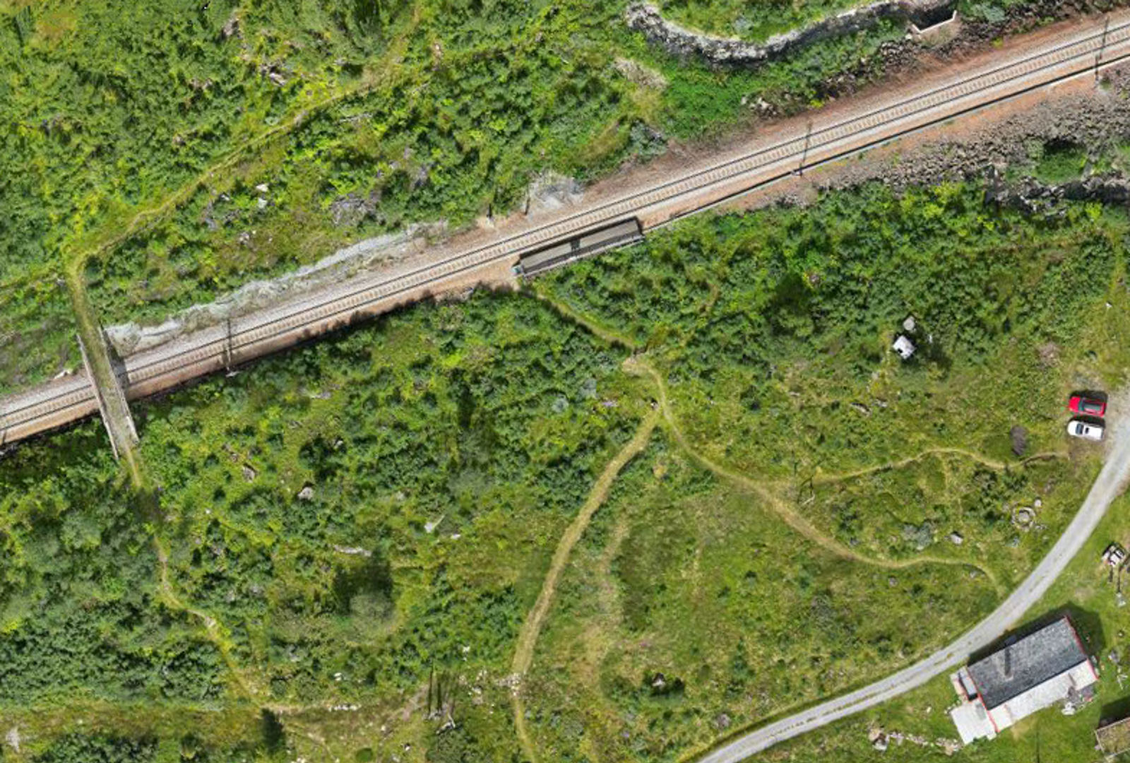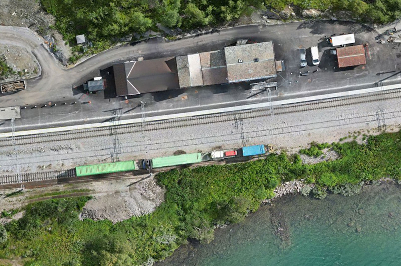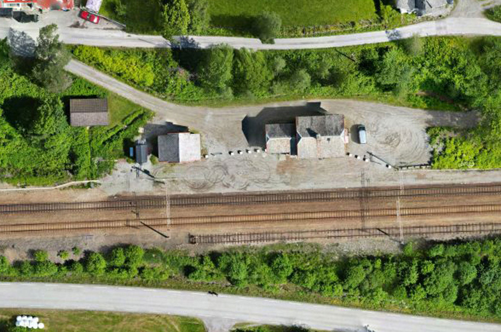 Dronebilde fra Urdland stasjon Foto: Ingebjørg Bernes, Bane NOR