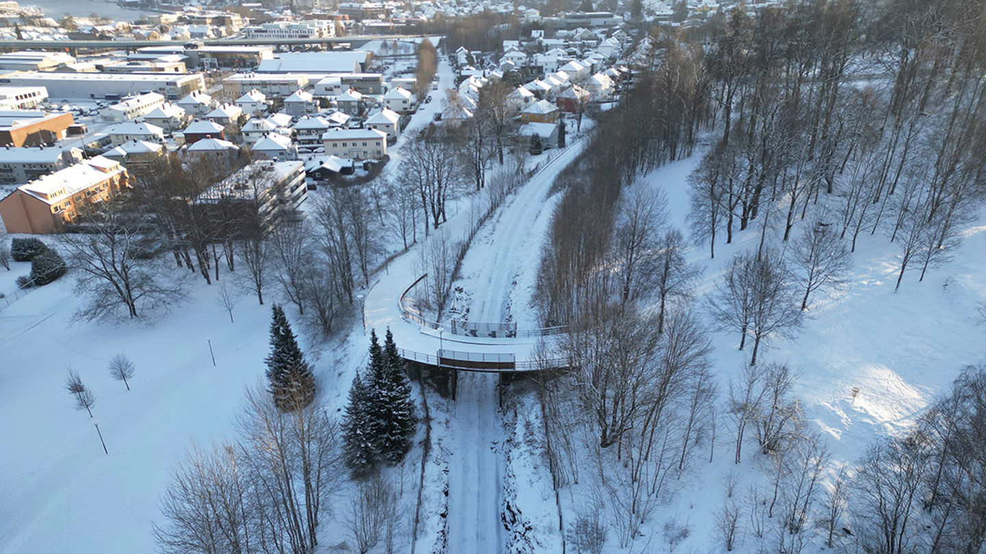 Fra og med onsdag 21. januar 2026 må vi stenge brua over den gamle jernbanetraseen ved Bikkjestykket. Vi må stenge fordi vi skal rive brua og fylle igjen skjæringen i området.