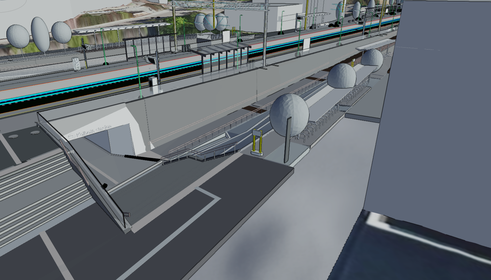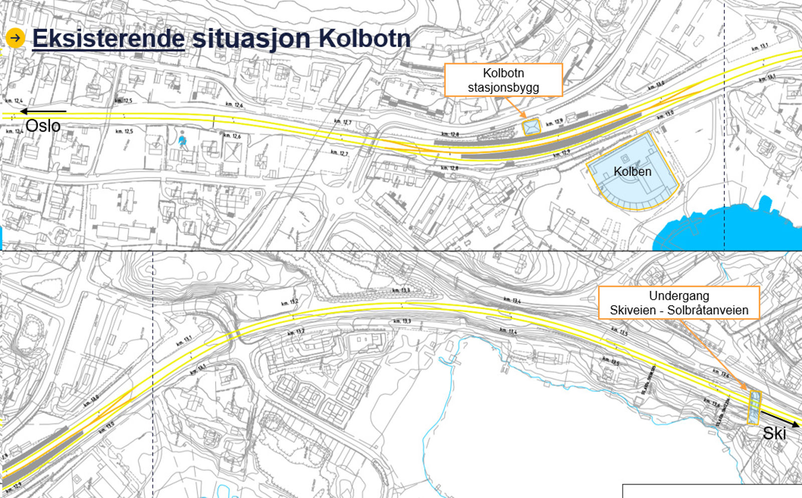 Det pågår fremdeles prosjektering av løsningene på Kolbotn stasjon, men vi har kommet langt i å planlegge utformingen. Det vil bli to sideplattformer, en ny undergang, ramper og trapper. Pakkhuset som brukes til sykkelhotell flyttes nord for stasjonsbygningen.
