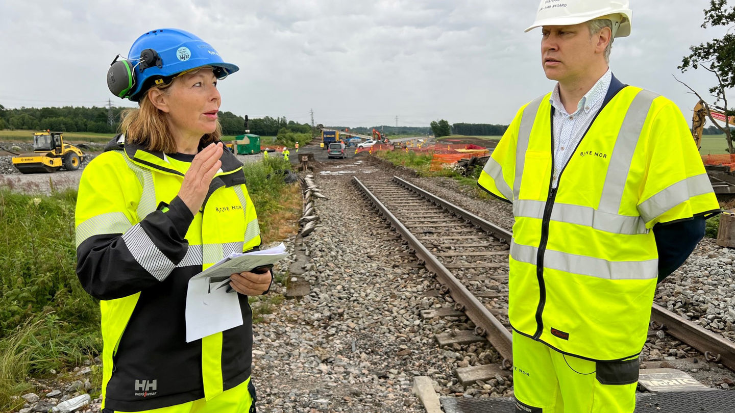 Når togene står, utfører vi nødvendig arbeid og vedlikehold på skinner, signalanlegg og annen infrastruktur. Tirsdag 28. juni var samferdselsminister Jon-Ivar Nygård på befaring i «bruddområdene» i Moss sentrum og på Dilling i Rygge.