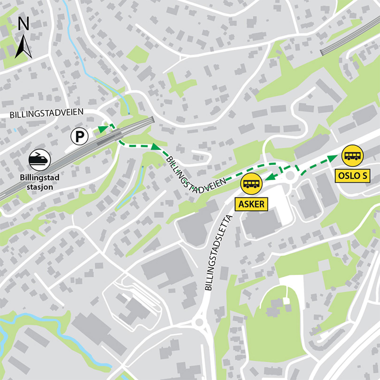 Billingstad stasjon i Asker kommune ligger på Drammenbanen. Herfra kan du ta toget i retning Oslo, Lillestrøm, Asker og Drammen.