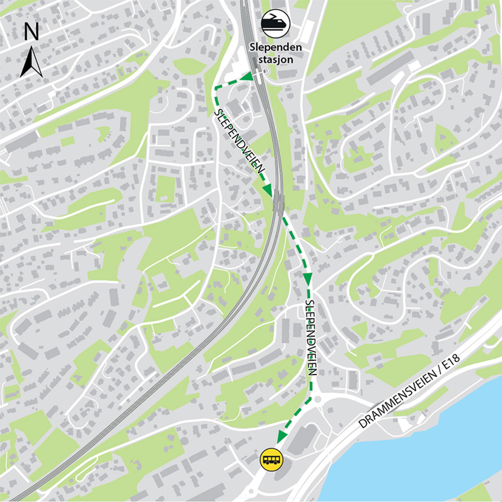 Ved avvik i togtrafikken settes det ikke opp egen alternativ transport. Benytt Ruters kollektivtilbud retning Asker og Oslo S. Nærmeste Ruterholdeplass er Slependen i Slependveien, gangavstand ca. 950 meter.